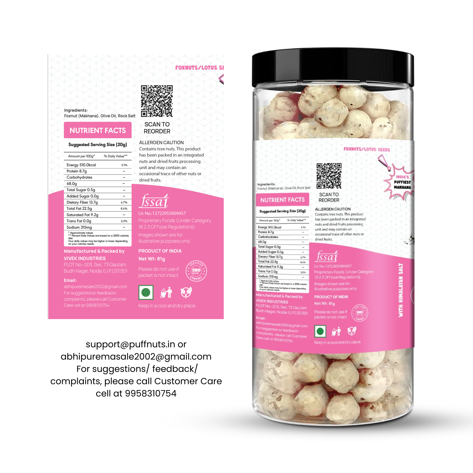Puffnuts Roasted Flavoured Makhana offers the perfect balance of taste, crunch, and nutrition in every bite. Made from premium lotus seeds and lightly roasted in olive oil, these airy, puffed snacks are gluten-free, low in fat, and rich in protein, fiber, and calcium. Ideal for healthy snacking at home, work, or on the go, they’re a healthy choice for both kids and adults.