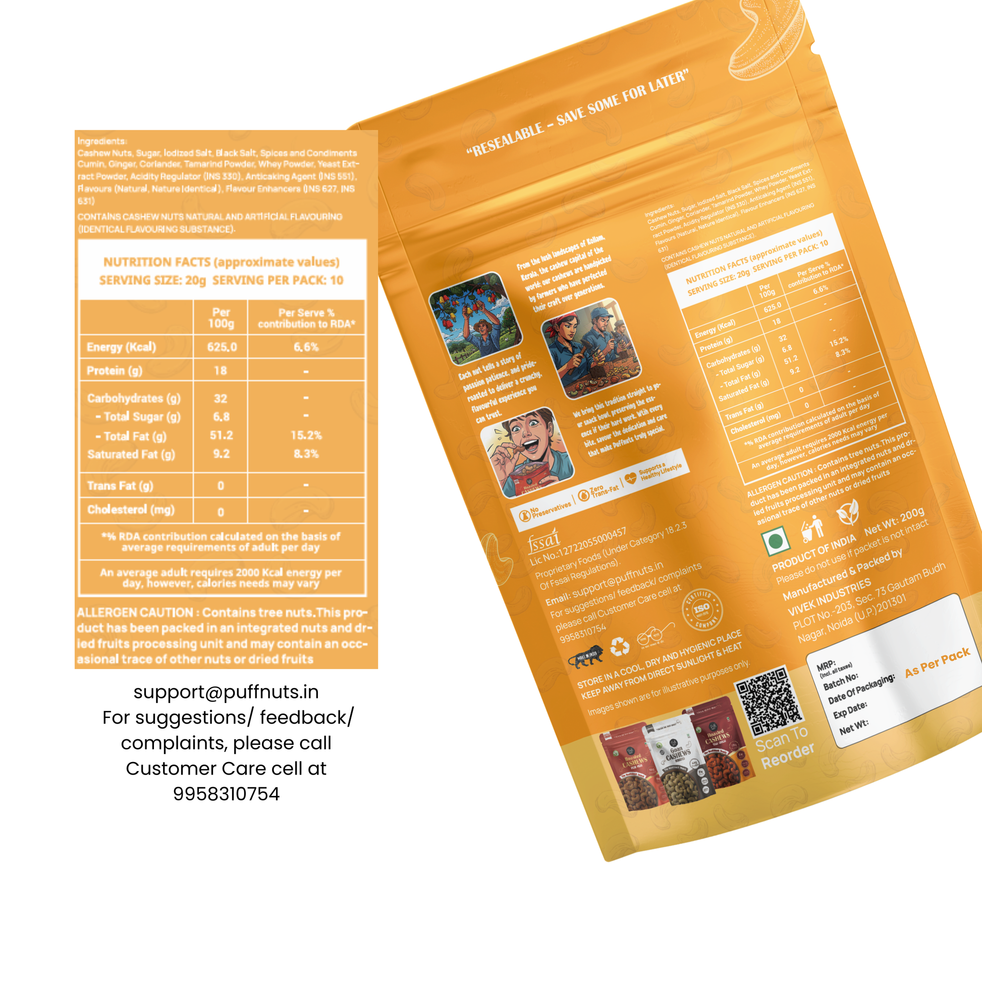 Completely gluten-free, cholesterol-free, and trans fat-free, this nutrient-dense snack is perfect for both kids and adults. Available in bold and irresistible flavours like Peri Peri, Thai Chilli, and more.., Puffnuts Cashew transforms ordinary snacking into a wholesome experience.